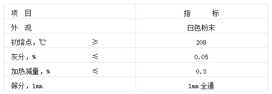本品為白色粉末,分子量382.58,初熔點(diǎn)208℃,可溶于甲醇、乙醇、乙酸乙酯或丙酮中。本品具有優(yōu)良的抗氧化性能。可作為PE、PP、PVC、ABS、SBS樹脂及聚酰胺和橡膠制品中,不污染、不著色,高溫加工不分解,可顯著改變制品的耐熱及抗氧性。與硫代酯類抗氧劑(如DLTDP、DSTDP等)和紫外線吸收劑并用,具良好的協(xié)同效應(yīng)。本品還具有金屬離子鈍化功能,亦應(yīng)用于聚烯烴的電纜制品。一般用量0.05-0.5%。