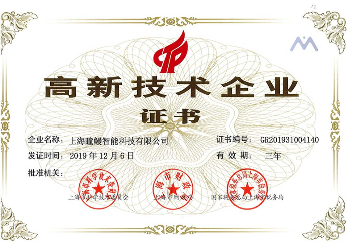 Read More >祝賀“瞳鰻智能”順利收獲由上海市科學技術委員會、上海市財政局、國家稅務總局上海市稅務局聯合頒發的國家“高新技術企業”證書。